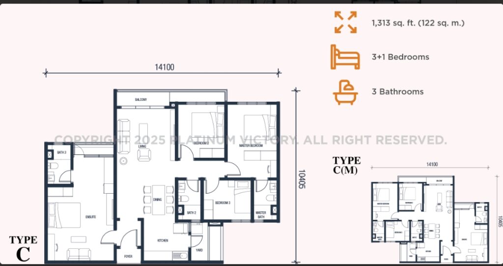Type C : 1,313 sq ft | 3+1 rooms + 3 baths |