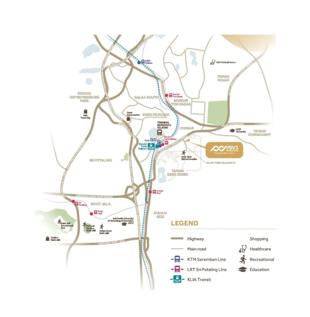 PSV2 Residences at Bandar Tasik Selatan is a new serviced apartment project that offers 3 to 5 rooms apartment unit with built ups from 947 to 2,034 sq ft.