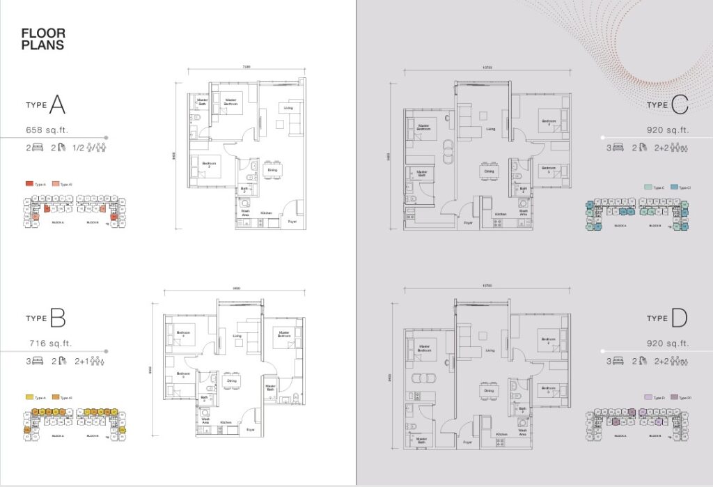 Type C & D, 920 sq ft | 3 rooms + 2 baths (with option of dual key concept) |